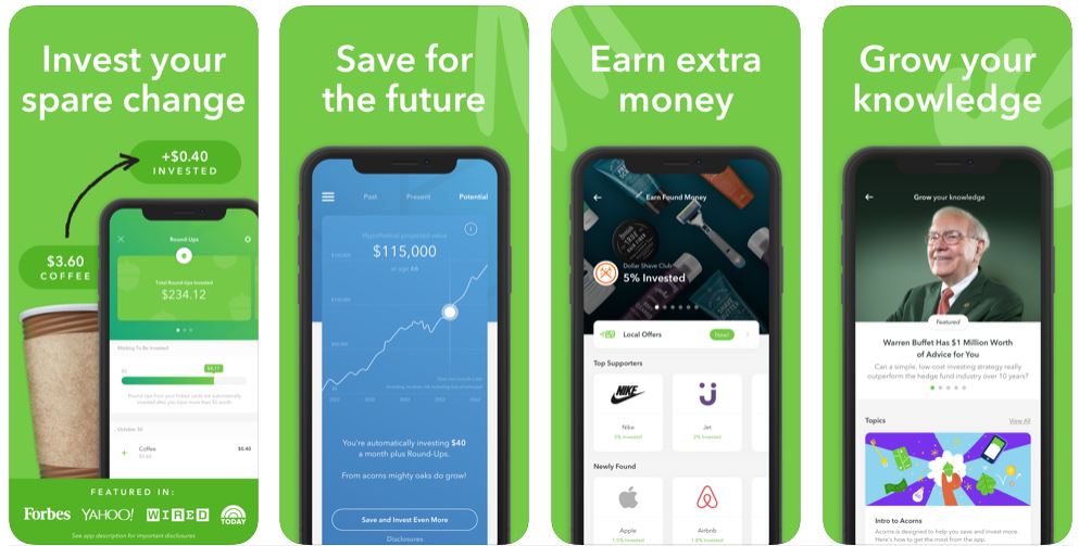 Acorns teaches investors how to spend smartly at no overdraft fees, using nationwide ATMs. It also guides how to earn an investment bonus up to 10% from the selected local businesses.