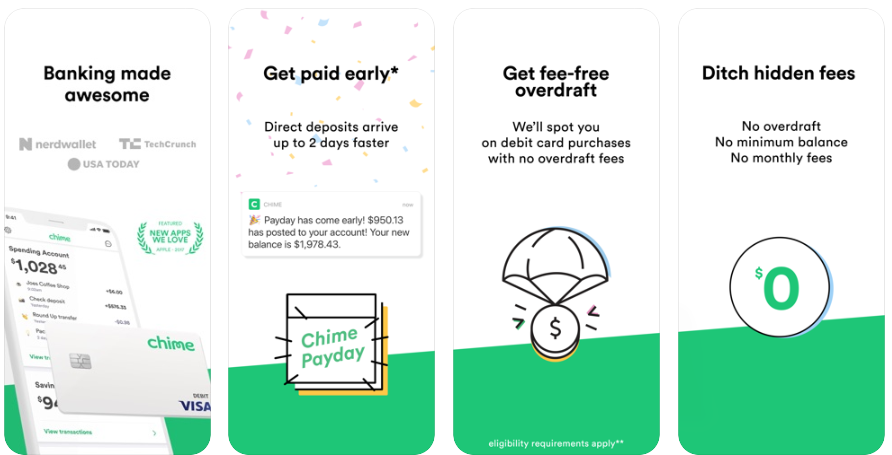 The unique features of Chime consist of deposit instant checks, no hidden fees or monthly fees, support mobile payment apps, send money to relatives with a free fee mobile payments, and more.