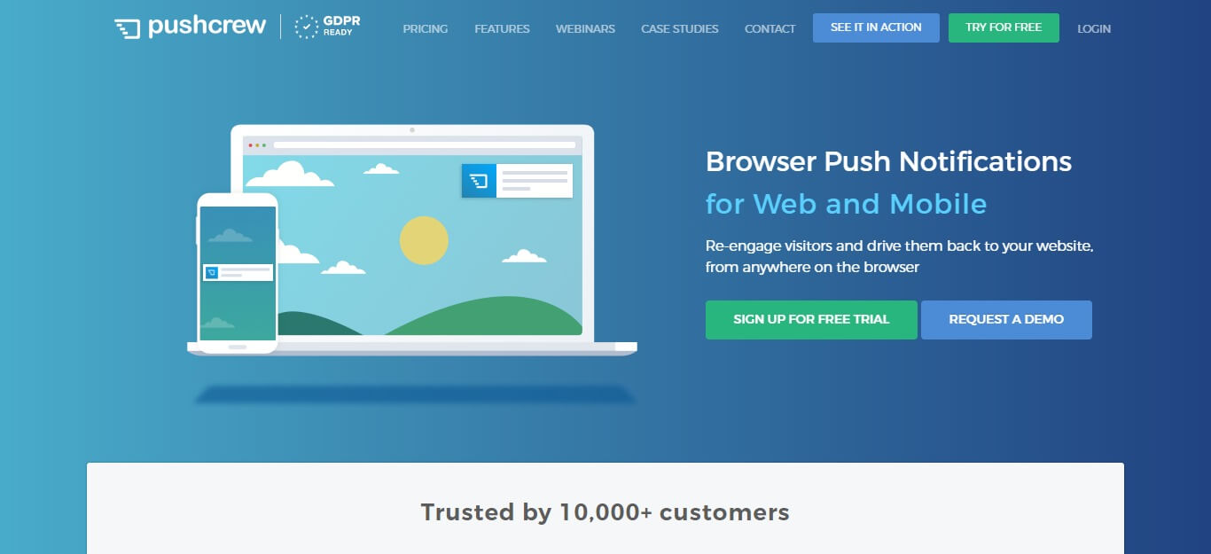 PushCrew offers both paid as well as free options to its users to use its service. It is a focused tool, which focuses on only mobile and web push notifications. It allows you to set notification triggers based on user behaviors or actions.