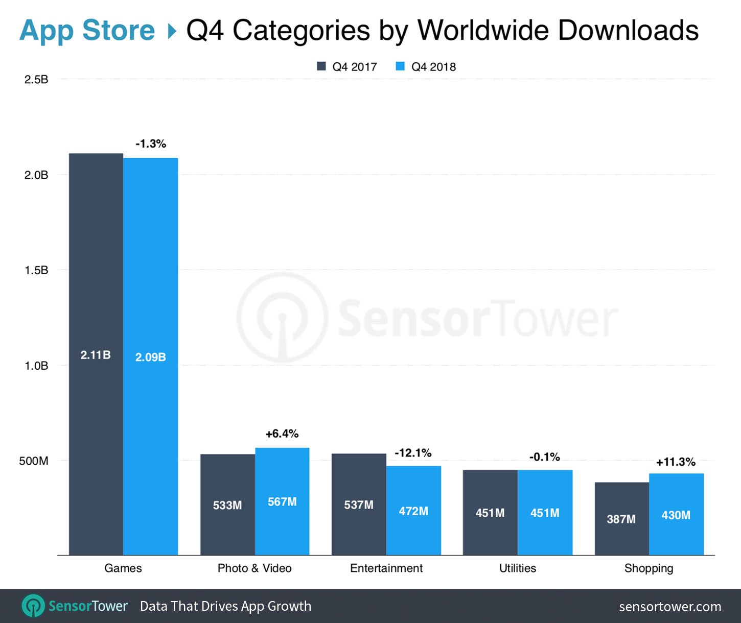 Apart from the ‘Games’ category, the second top App Store category worldwide by downloads in Q4 2018 was Photo & Videos with 567 million. The category saw downloads increase 6.4% year-over-year from 2.11 billion in 4Q17. This data shows Photo & Videos was expended during 2018 in the App Store.