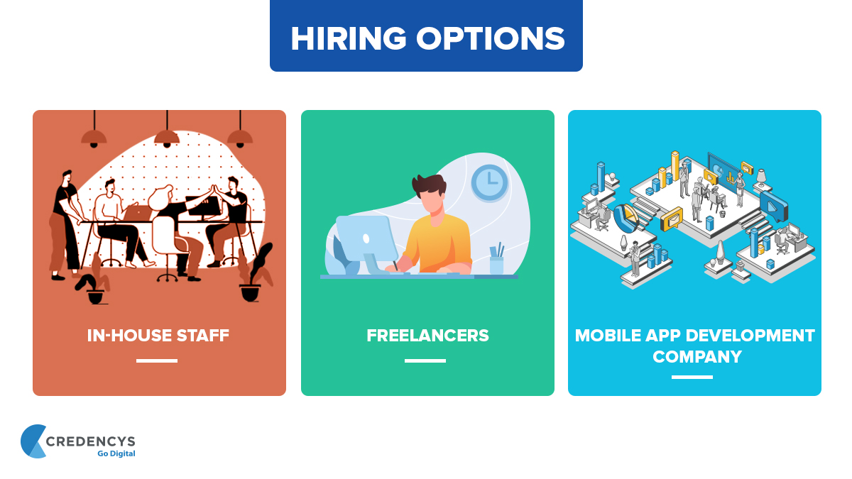 This option basically involves hiring full-time employees to help you build an app.