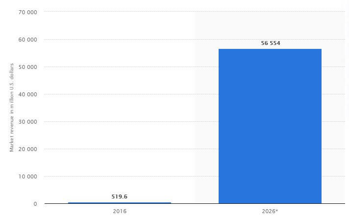 In 2016, the beacons technology market was valued at 519.6 million U.S. dollars. It was estimated to increase at a CAGR of 59.8% to reach about 56.6 billion U.S. dollars in size in 2026. – Statista